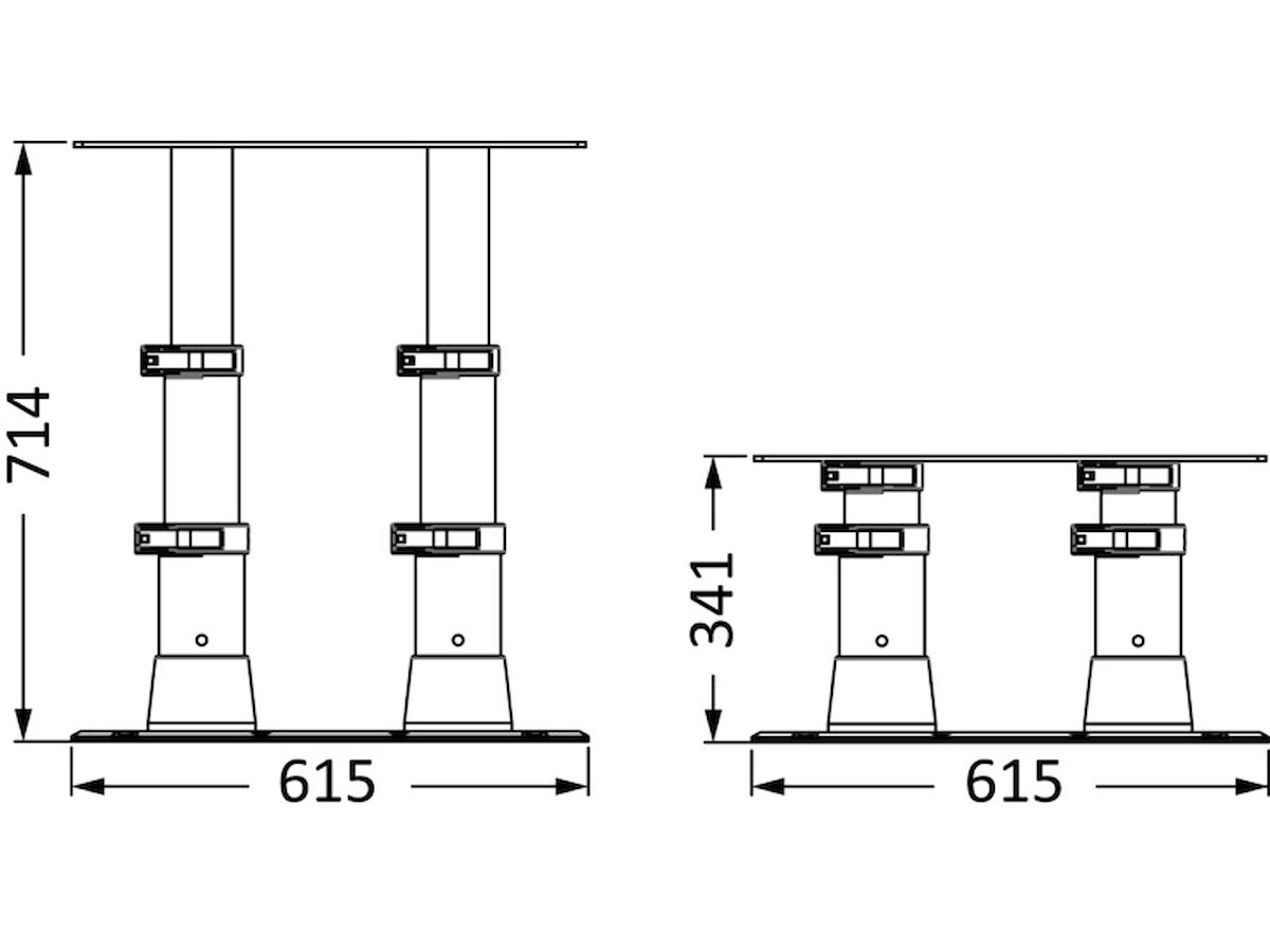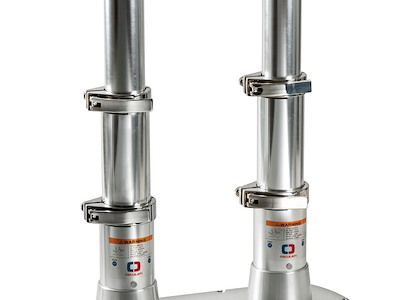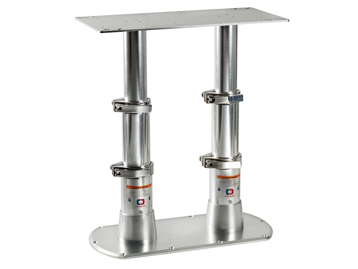 Collari di fissaggio in acciaio inox che rendono le gambe molto stabili e robuste, completa di doppia molla a gas per la risalita.