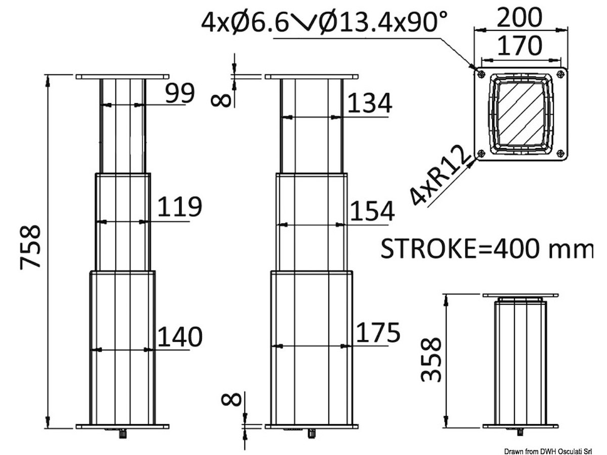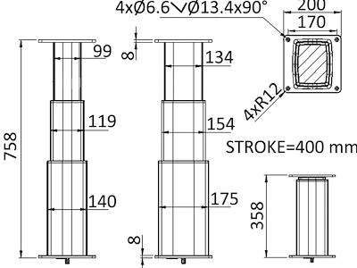 Gamba tavolo tri-telescopica rettangolare 12V all.