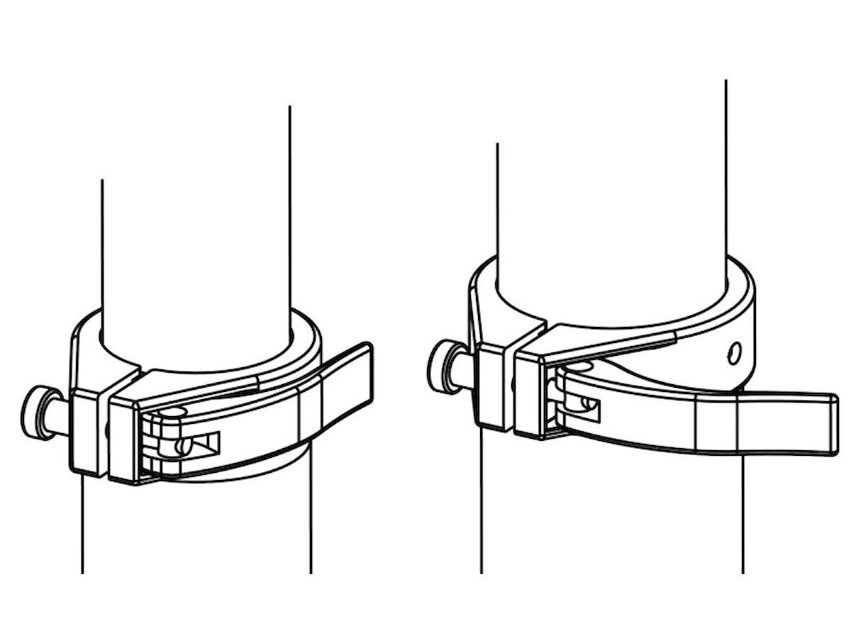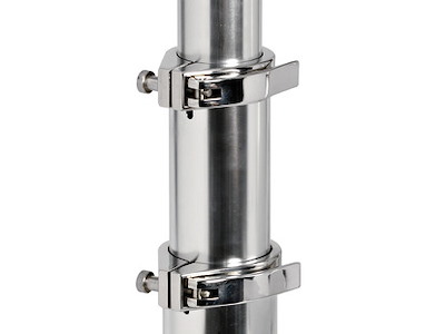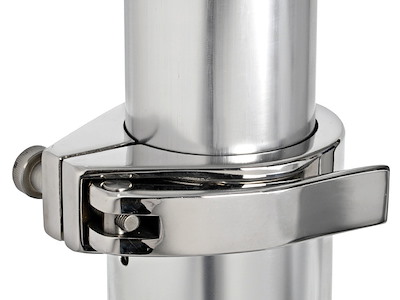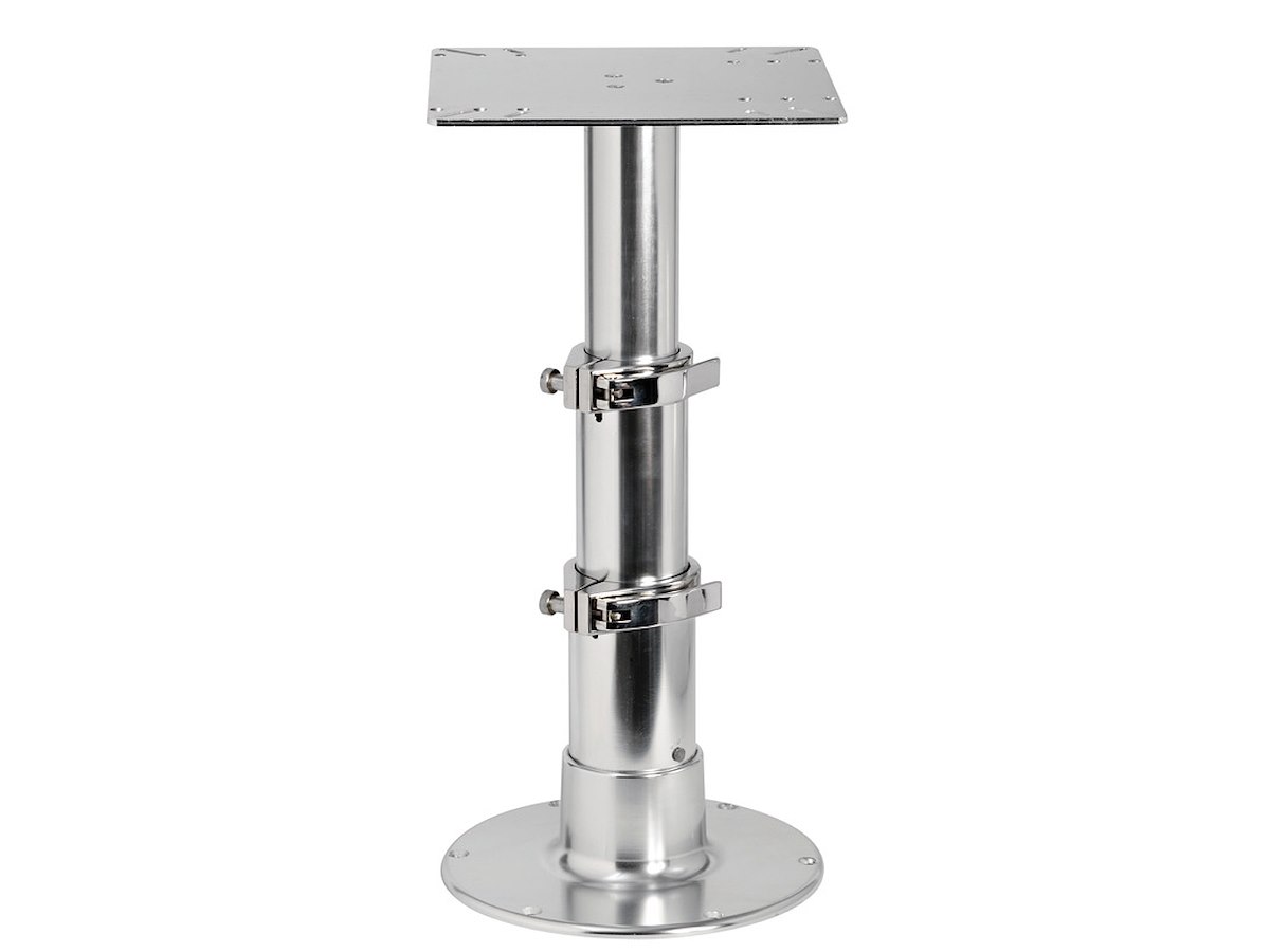 Fabbricata in alluminio lucidato a specchio ed anodizzato. Collari di fissaggio in acciaio inox che rendono la gamba molto stabile e robusta. Completa di molla a gas per la risalita. Non necessita di forare il pavimento per la discesa. Tri-telescopica.