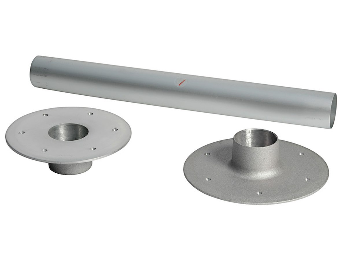 Costituita da due basi in alluminio anodizzato una ad incasso, l'altra esterna, più tubo in alluminio anodizzato Ø 80 mm, munita di innesti conici.