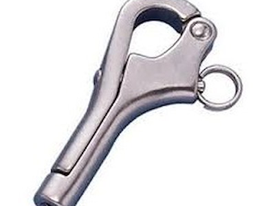 gancio a pellicano per battagliole apribili, realizzato in acciaio inox, è provvisto di registro indipendente, può essere abbinato ai tenditori da mm 6/8, oppure installato direttamente sul cavo