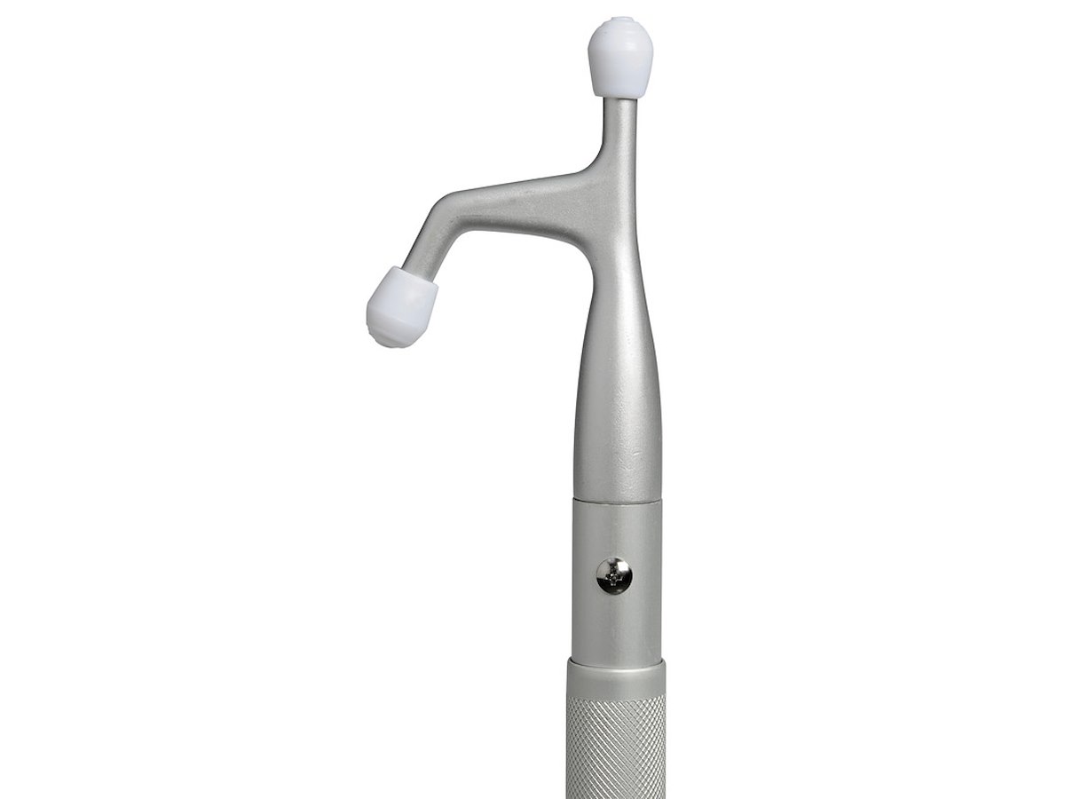 Completamente in alluminio anodizzato naturale (compreso raffio). Ha un bloccaggio rapido in qualsiasi punto tramite rotazione, é un modello estremamente robusto.