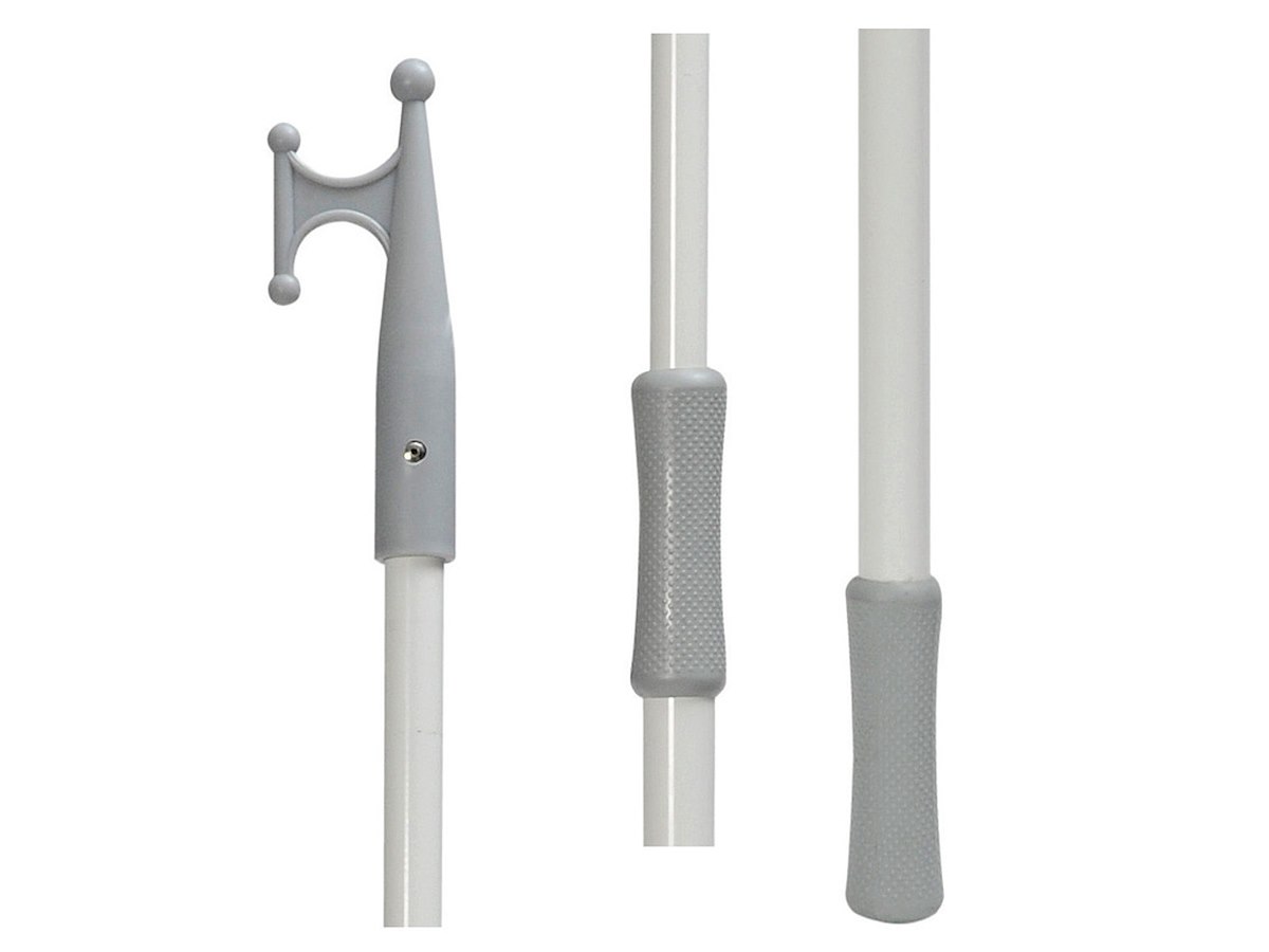 Gancio in nylon grigio, manico in alluminio verniciato con resine epossidiche e doppia impugnatura.