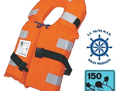 giubbotto a stola destinato all'equipaggiamento delle navi da pesca, commerciali, passeggeri e da diporto secondo normativa MSC 200 (80) IMO (150N) SOLAS MED