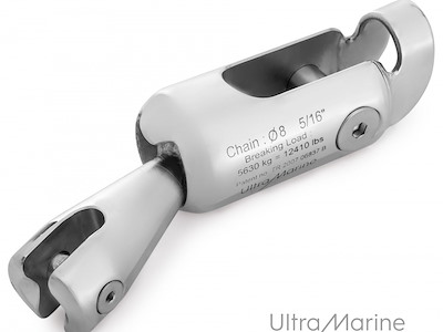 Il giunto in acciaio inox AISI 316 è dotato di un dente di ribaltamento unico che consente all’ancora di posizionarsi in modo corretto nel musone di prua. In combinazione con la capacità di rotazione e avvitamento a 360°, permette di calare e salpare l’ancora con maggiore facilità e sicurezza. I bulloni di bloccaggio a testa esagonale evitano la necessità di ulteriori viti di arresto per fissare i perni.