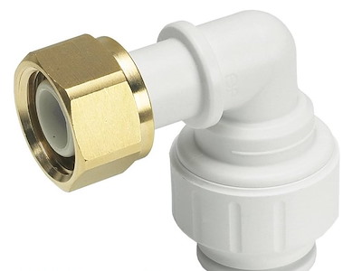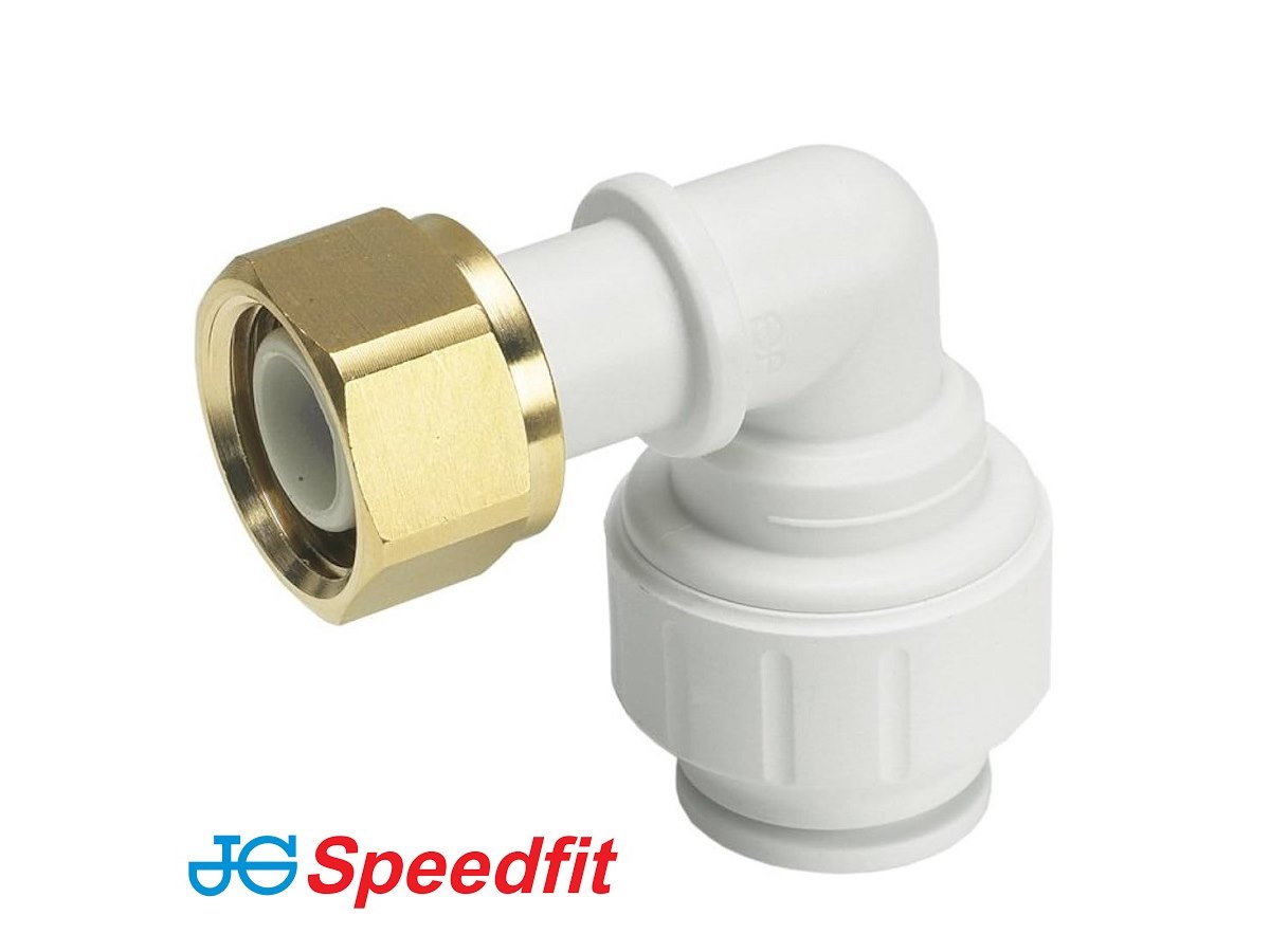 gomito a 90° Speedfit John Guest femmina femmina con ghiera in ottone e rondella di tenuta