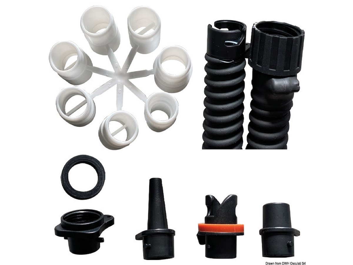 Dotato di un sistema di controllo che garantisce l’arresto automatico alla pressione selezionata. Con una portata di 160 l/min è in grado di gonfiare ad un pressione massima di 1200 mbar (18 psi) . Il sistema di aggancio tubo-gonfiatore del tipo "a vite" lo rende stabile e sicuro. Fornito nell'apposita borsa con tracolla è dotato di tutti gli accessori: tubo lunghezza 1,70 m, cavo alimentazione 3 m, spinotto accendisigari e morsetti per batteria 12 V. La versione standard è fornita con attacco a baionetta ed è ideale per tavole SUP .