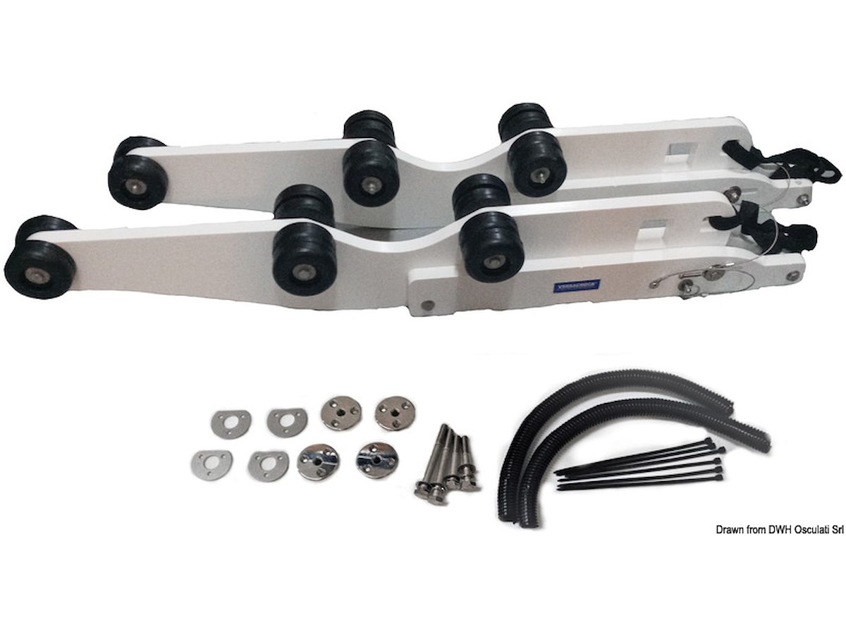 Cinghie di fine corsa incluse (limitano l'angolo di inclinazione). Si può abbinare ad arganelli manuali o elettrici.