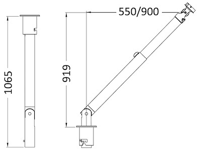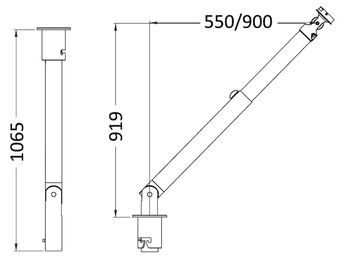 Possono assumere due posizioni di lavoro: in asse con la barca (sospendita del tender), oppure inclinata a 20° all'interno (sospendita passerella). Il tubo telescopico, grazie alla maniglia riponibile nella testa, può essere regolato a varie lunghezze in base alle esigenze e ai vari tipi di tender.