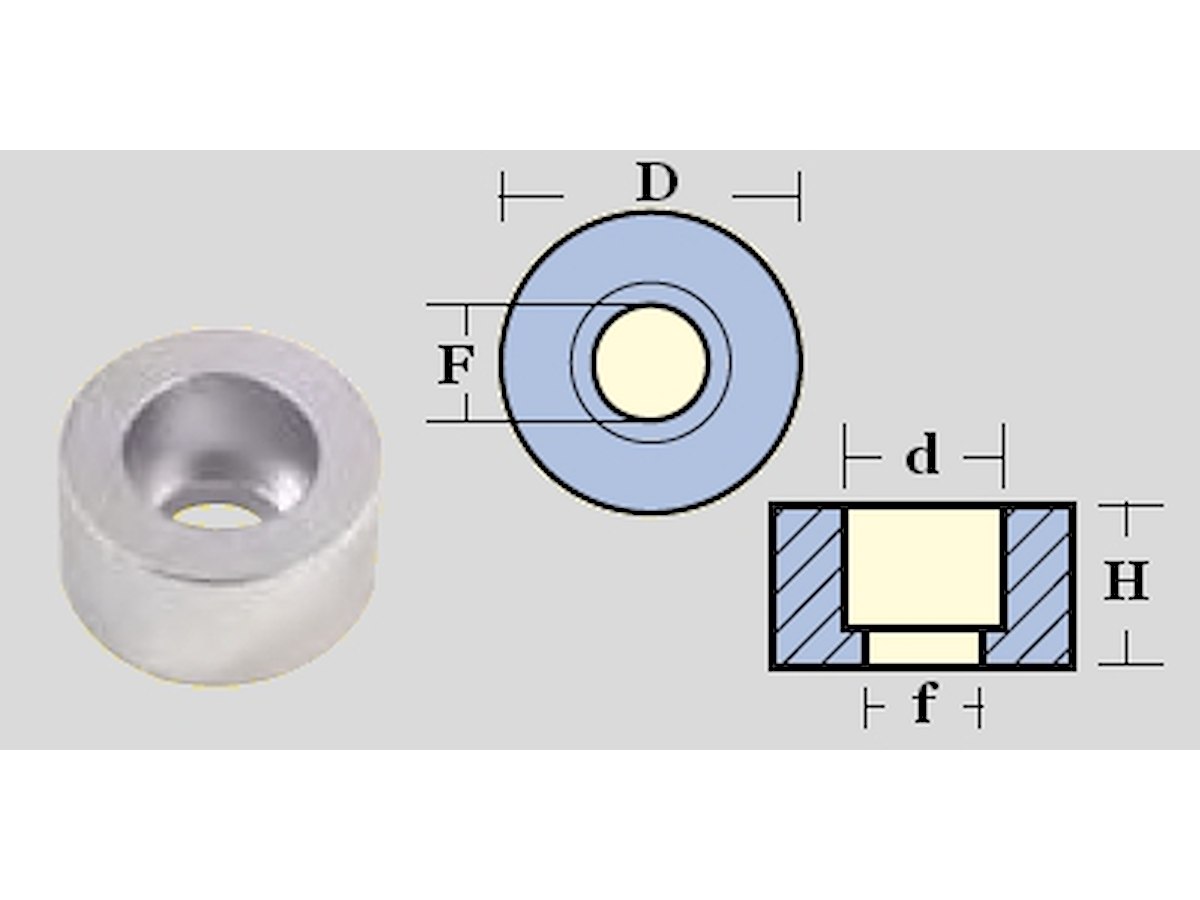 dimensioni: D=47,d=25,H=25,F=18,f=18