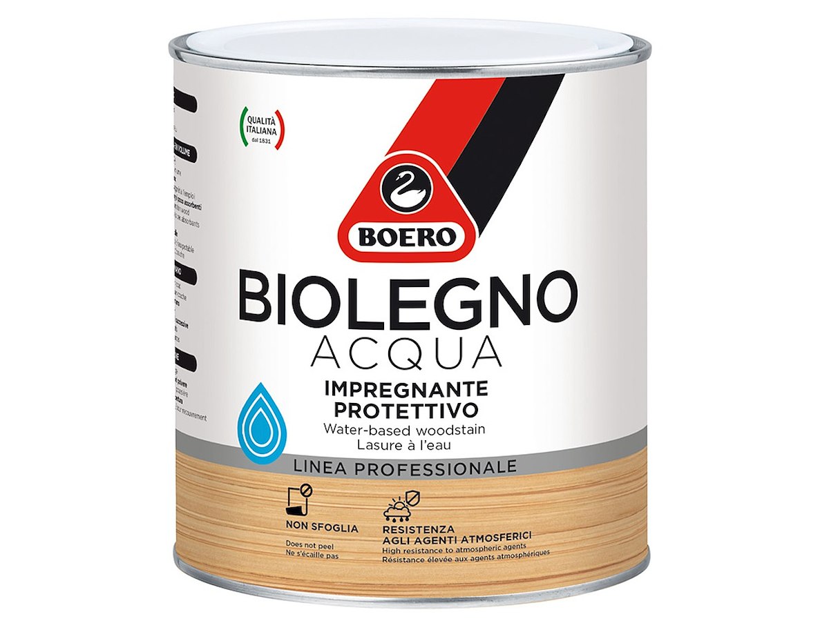 Biolegno Acqua è un impregnante protettivo per legno all’acqua, per la decorazione e la protezione di manufatti come serramenti, perlinati, mobili e oggetti di bricolage, anche esposti in ambienti severi, quali atmosfere marine e montane. Protegge il legno in profondità, colorandolo. Esalta la bellezza delle venature, mantenendone inalterato l'aspetto e la naturale traspirabilità. Essicca rapidamente ed è inodore.