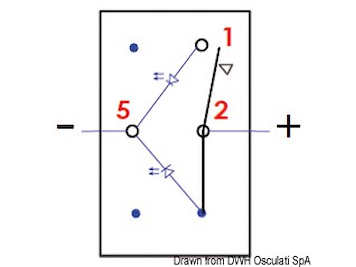 Impermeabili IP56 serie Marina, richiedono per l’installazione un foro rettangolare da 21,5x36,8 mm. Capacità massima 20 A a 12 V e 12 A a 24 V. Completi di doppio LED di colore rosso: uno che illumina il simbolo dell’utenza, sempre acceso, il secondo che illumina una apposita fessura sotto il simbolo che si accende quando si attiva l’utenza. Bascula da ordinare a parte.