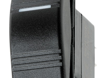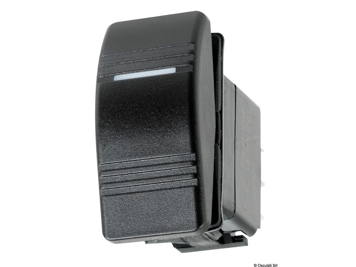 Richiedono per l’installazione un foro rettangolare da 21,5x36,8 mm. Capacità max 20 A / 12 V. Bascula rigida e spia luminosa a LED che si illumina attraverso la bascula attivando il contatto.