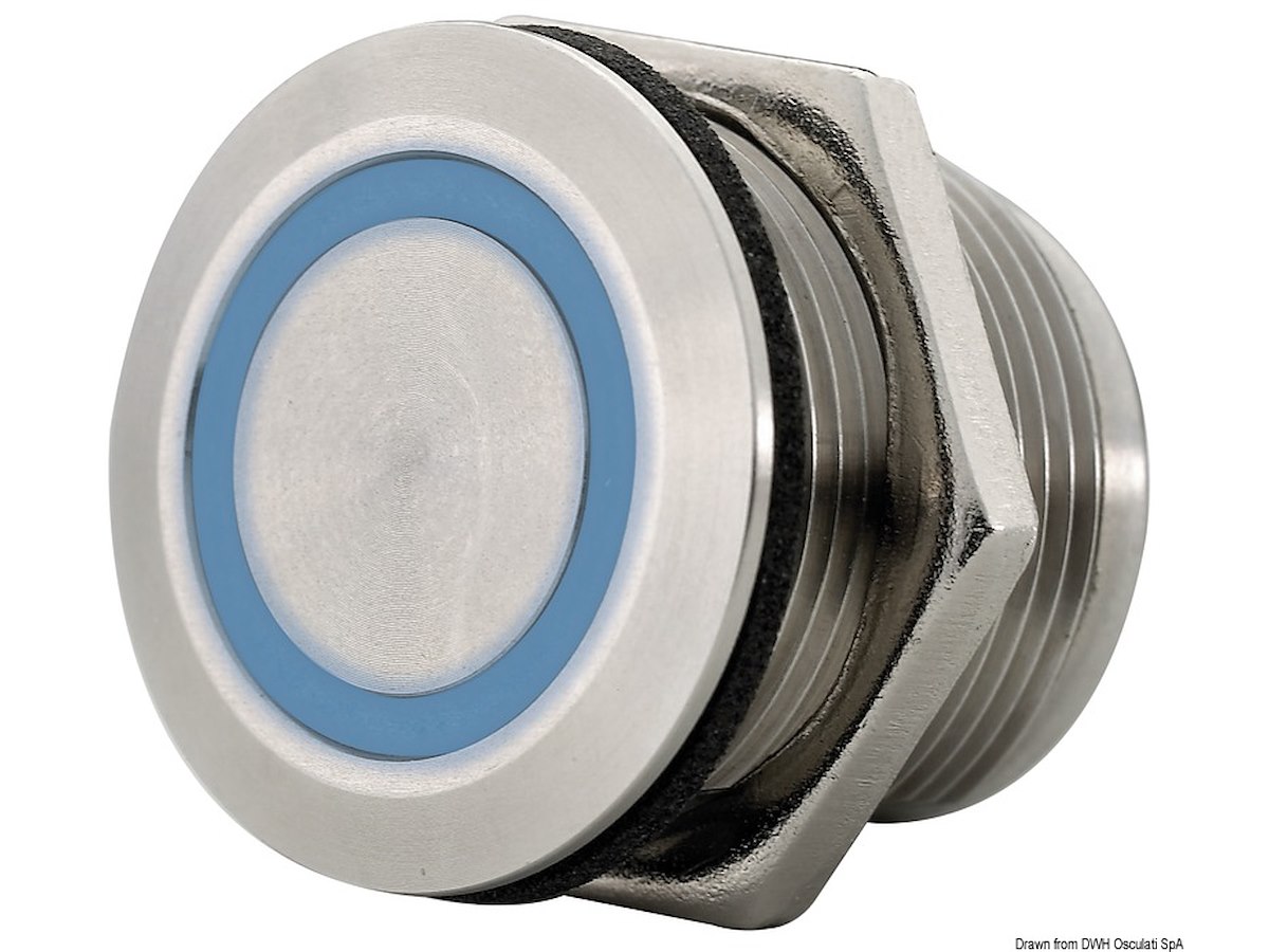 Completamente in acciaio inox e impermeabile. Un tocco breve attiva la funzione ON-OFF. Tenendo premuto si attiva la funzione dimmer. LED arancione (OFF) - LED bianco (ON).