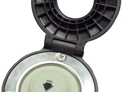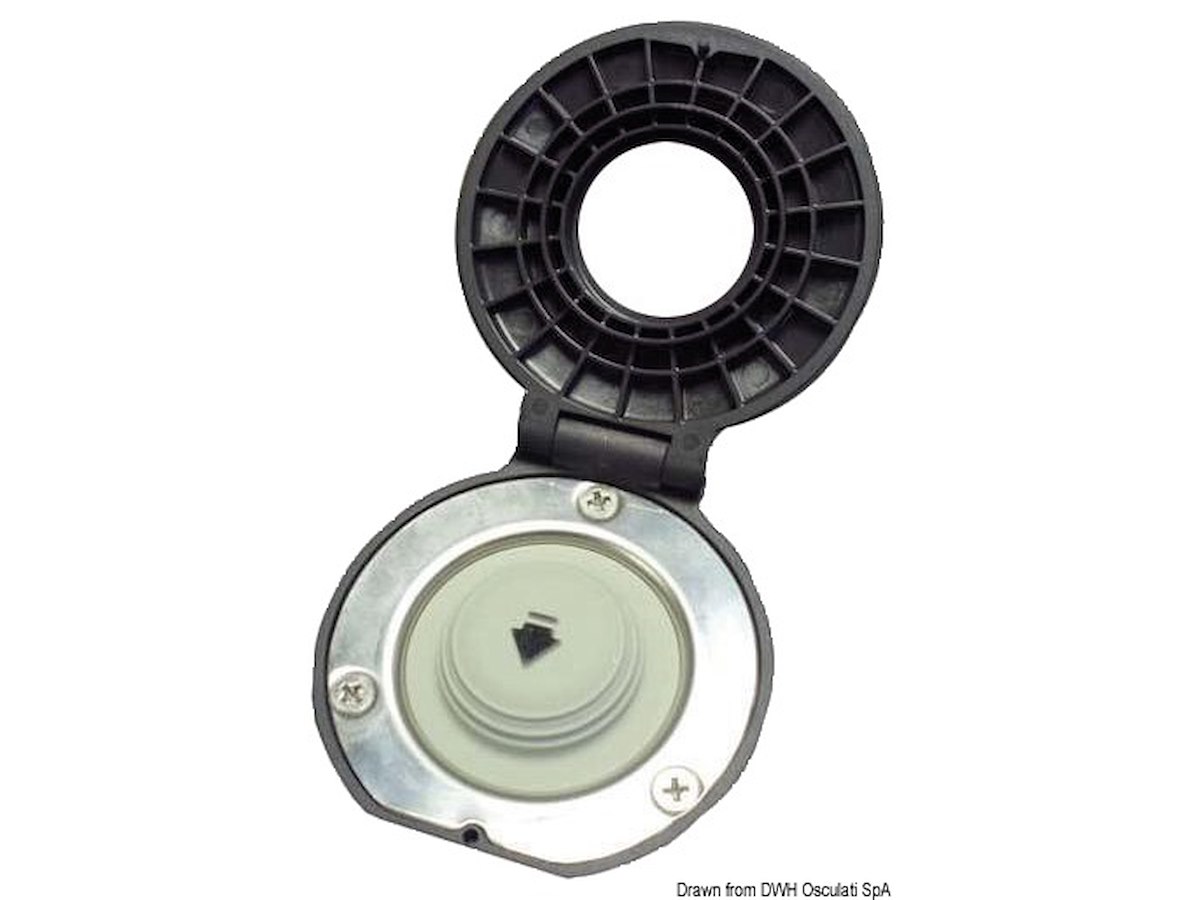 Realizzato in materiale composito, completamente stagno e quindi adatto per il montaggio in coperta; dotato di sportellino apribile.