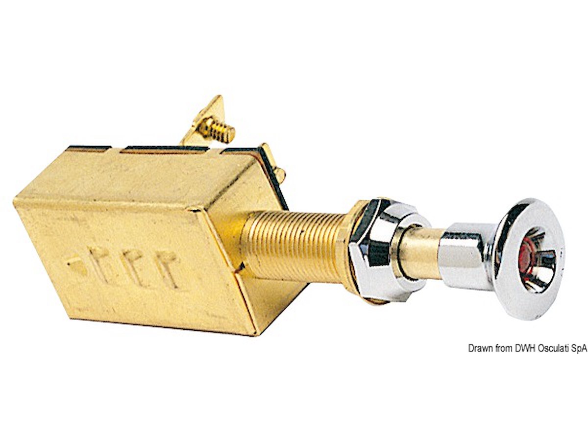 In ottone cromato, contatti argentati. Stesso design degli interruttori 14.918.01/2//5/6. Spia luminosa incorporata sulla testa del pomolo.