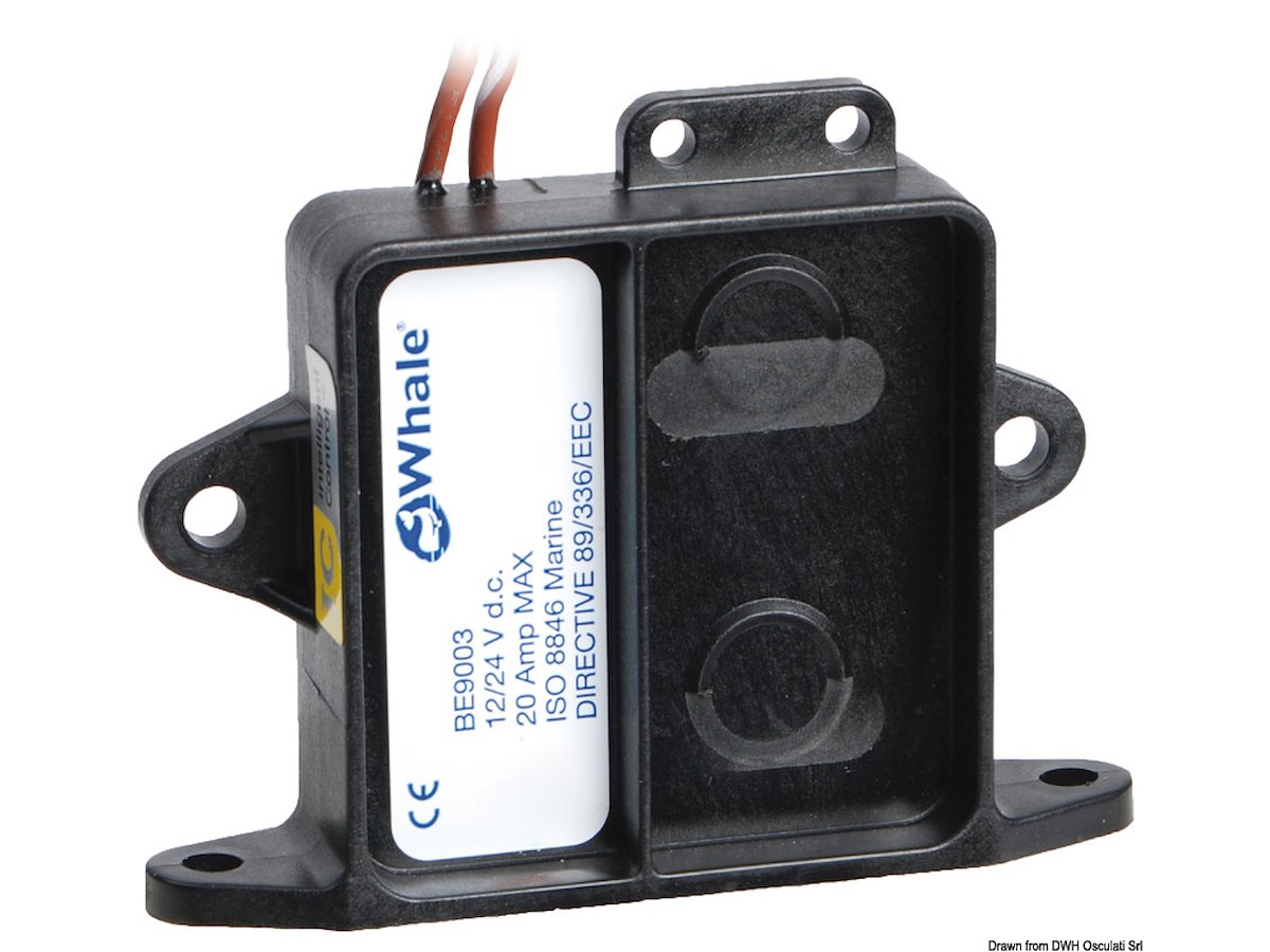 - Utilizza la tecnologia a sensori di campo MIRUS, con un sistema brevettato e può comandare pompe di sentina a 12 o 24 volt DC fino a 20 A di assorbimento;