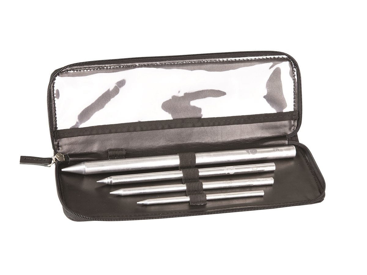 Kit impiombatura, pratico astuccio in cordura contenente 4 aghi in alluminio con alloggiamento filettato per facilitare l’inserimento della cima.