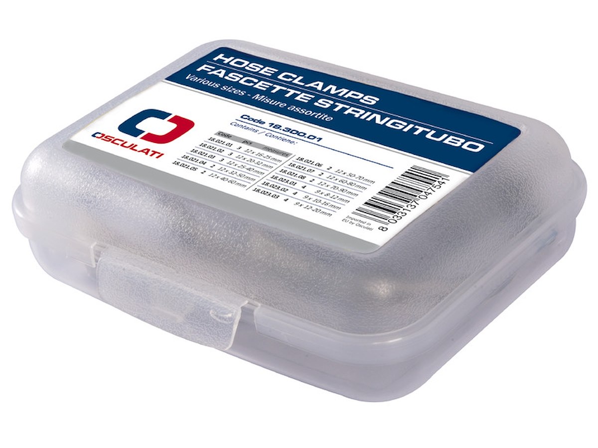 Descrizione: 3 pezzi del 18.021.01 (12 x 16-25 mm); 3 pezzi del 18.021.02 (12 x 20-32 mm); 3 pezzi del 18.021.03 (12 x 25-40 mm); 2 pezzi del 18.021.04 (12 x 32-50 mm); 2 pezzi del 18.021.05 (12 x 40-60 mm); 2 pezzi del 18.021.06 (12 x 50-70 mm); 2 pezzi del 18.021.07 (12 x 60-80 mm); 2 pezzi del 18.021.08 (12 x 70-90 mm); 4 pezzi del 18.023.01 (9 x 8-12 mm); 4 pezzi del 18.023.02 (9 x 10-16 mm); 4 pezzi del 18.023.03 (9 x 12-20 mm).