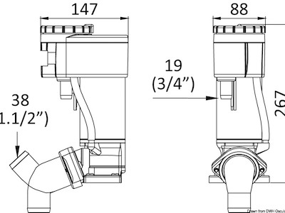 Supporto completo da sostituire alla pompa manuale. I tubi di carico/scarico rimangono invariati. Funziona sopra o sotto la linea di galleggiamento.