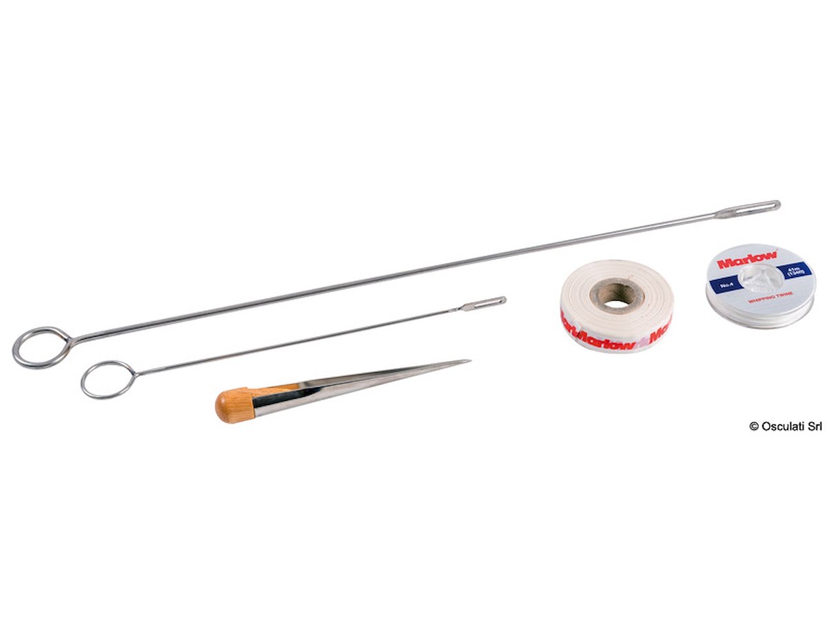 Descrizione: Kit composto da: caviglia, 2 aghi in acciaio di cui uno da 25 cm e uno da 50 cm (lunghezza), filo cerato, nastro di finitura e istruzioni figurate.