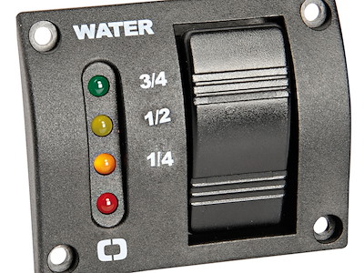 Formato da pannello con segnalatore a 4 LED (1/4 - 1/2 - 3/4) + sonda con flangia internazionale a 5 fori. Provvisto anche di filetto e dado per fissaggio universale in tutti i serbatoi di qualsiasi materiale. predisposta per serbatoi altezza 15/50 cm. I sensori della sonda andranno tagliati in proporzione all'altezza del serbatoio utilizzato.