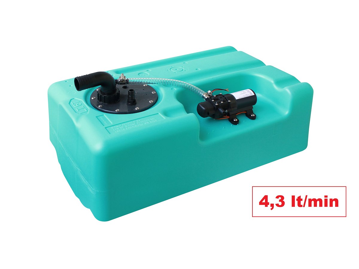 kit serbatoio completo di autoclave MH mini 12V 3,5Amp, portata 4,3 lt/min (22.0266.01) fornito completo di bocchettone e sfiato, consigliato per piccole imbarcazioni con 1 utenza