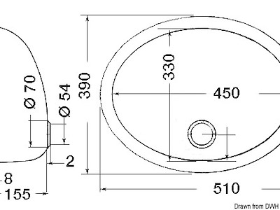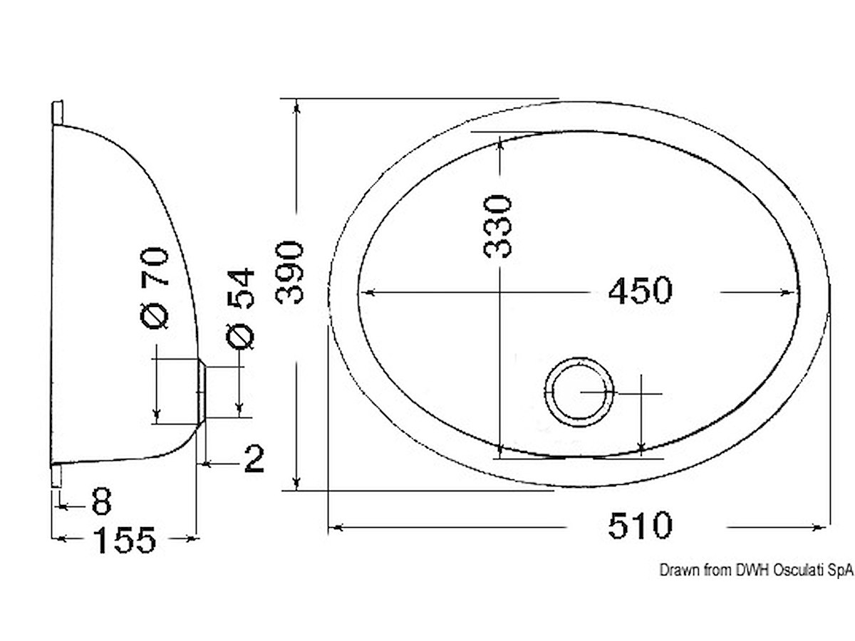 Forma: Ovale misure mm: 510x390 Profondità mm: 155 Piletta di scarico OPTIONAL: [50.186.98] [50.186.99]