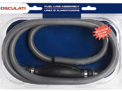 Per motori: Universale, senza innesti terminali Lunghezza m: 2,5 Pompa aspirante: Grande capacità art. 52.732.01 Tubazione: Con rinforzi tessili a 3 strati 8x15,5 mm Fascetta di fissaggio: Acciaio inox