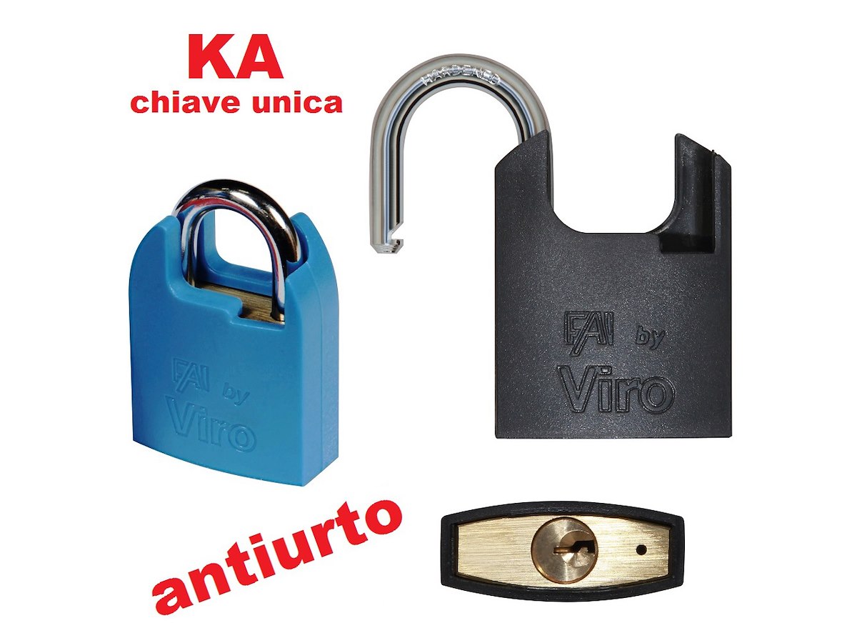 La cover in nylon protegge contro gli urti e i graffi (anche alle basse temperature) sia le mani dell'utilizzatore, sia le superfici su cui è applicato il lucchetto. cifratura KA (chiave unica)