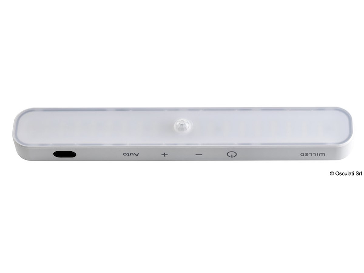 La luce led ha una batteria con una durata fino a 12 ore, un comando per regolare l‘intensità luminosa, un indicatore del livello batteria e un sensore movimento per l’accensione temporanea.