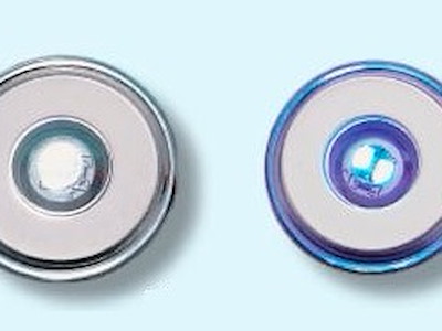 luce di cortesia a LED (2x0,2W) tipo circolare, 12V assorbimento 0,4W, esterno Ø39 mm, foro 18,7 mm