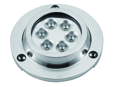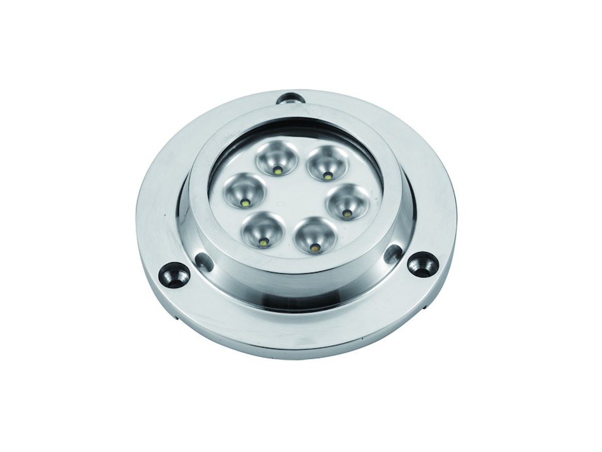 luce subacquea in acciaio inox 316, a LED HD(6x3W) luce 5500-6300K, 12/24V assorbimento 14,2W, Ø94 mm spessore 21 mm