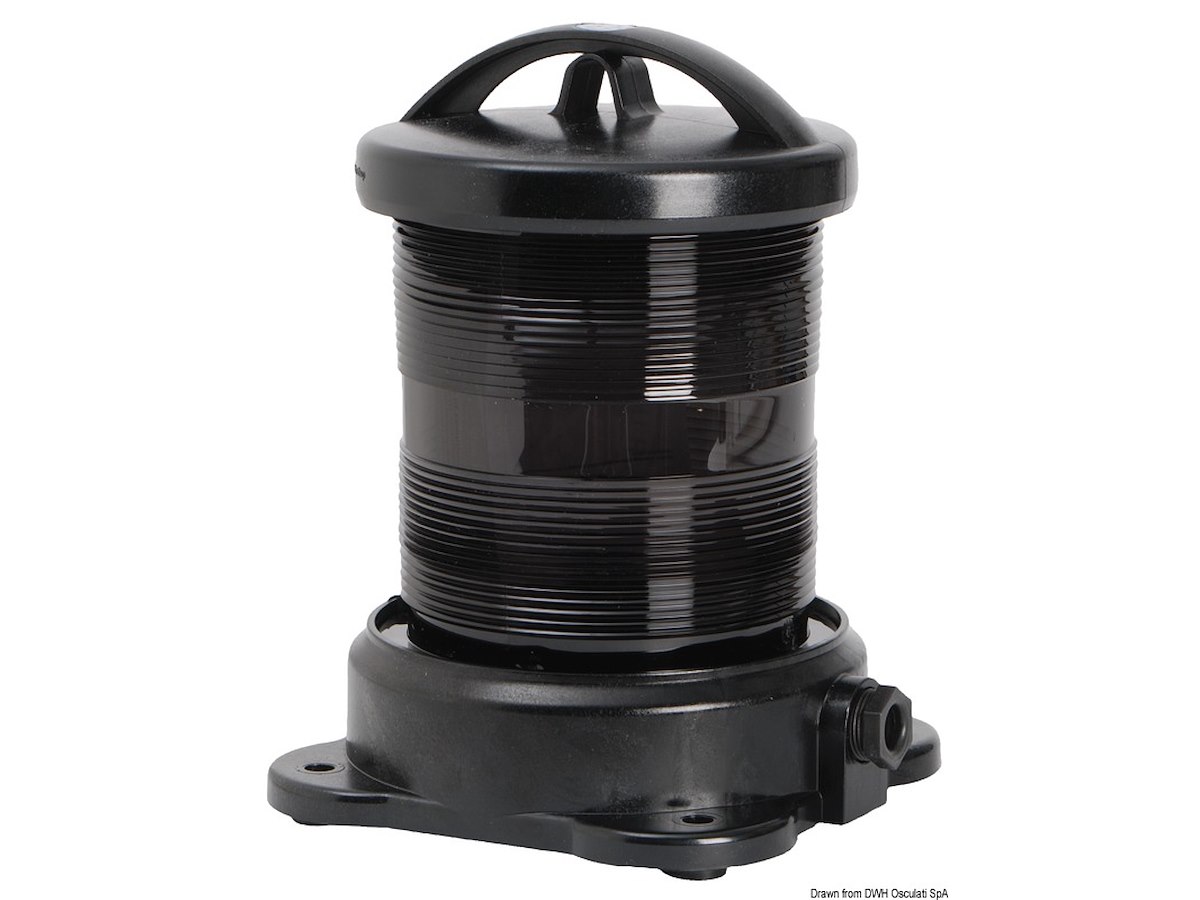Omologati anche per Marina Mercantile. Realizzati in policarbonato nero e acciaio inox. Completi di speciale lampadina a filamento verticale.