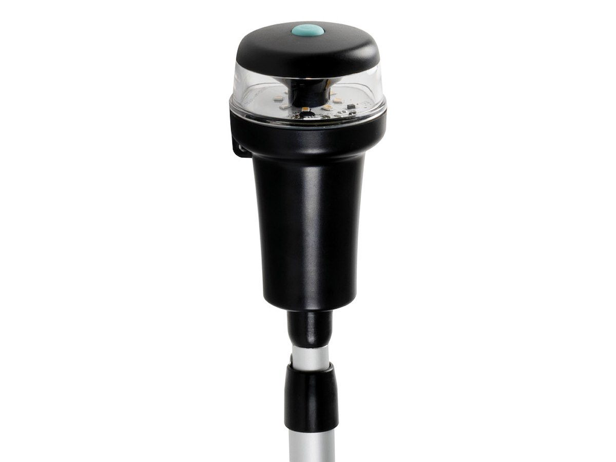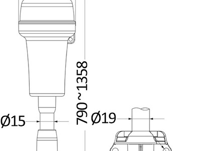 Montate su tubo telescopico 790/1358 mm. Alimentazione interna con 3 pile AA, autonomia fino a 24 ore.