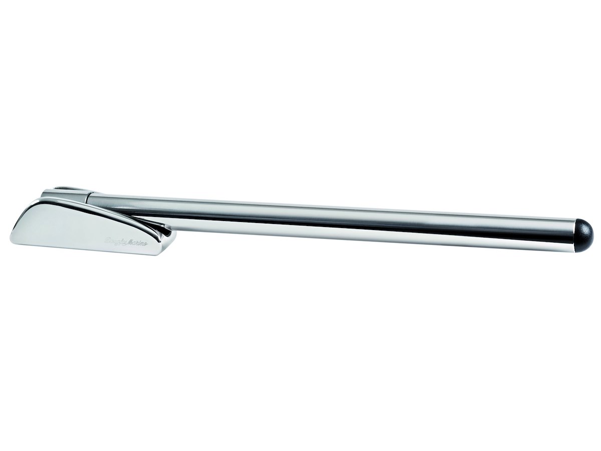 realizzata interamente in acciaio AISI 316 consentirà di avere un aiuto alla risalita sulla scaletta o plancetta, universale di facile installazione con blocco ricavato dal pieno a scatto sai a riposo che in posizione d'uso