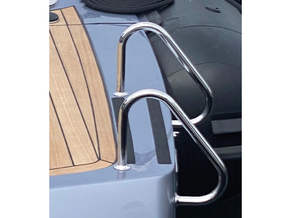 Da installare tramite prigionieri o piastrine vicino alla scaletta, realizzata in acciaio inox 316 lucidato a specchio.
