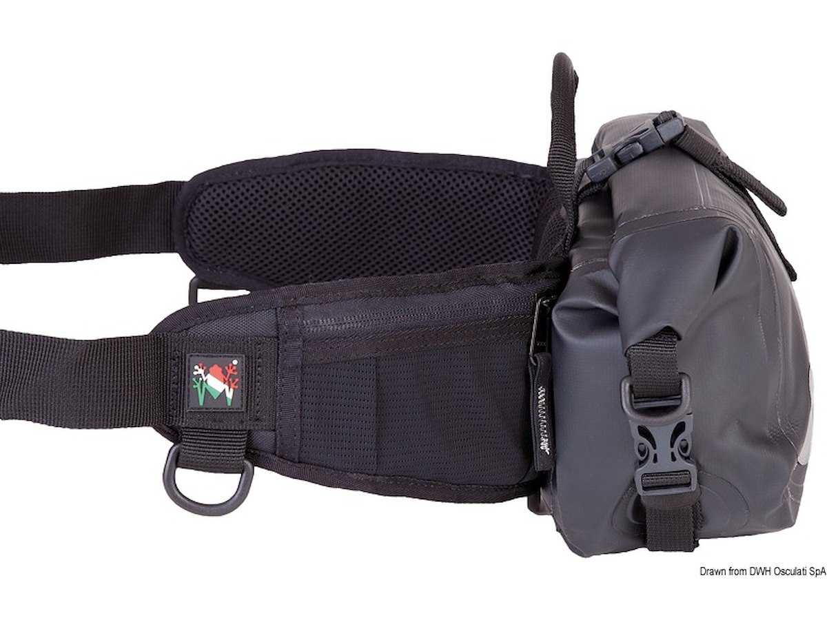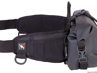 Marsupio compatto; materiale PVC 500 D; chiusura Quick Proof alta o laterale; inserti rifrangenti; zona lombare imbottita dotata di due tasche.