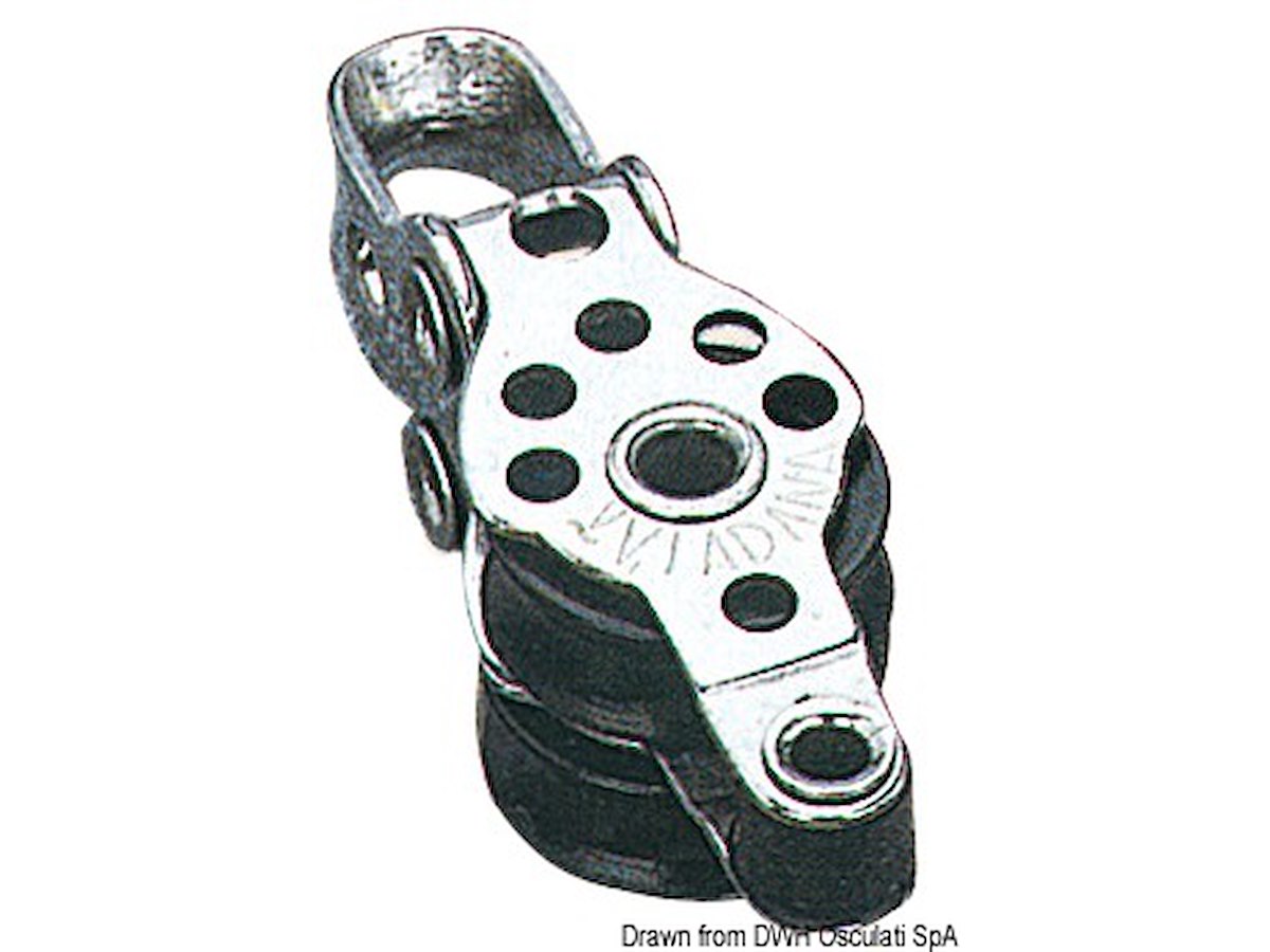 Versione: Doppio con arricavo Puleggia Ø mm: 17 Per cime fino a mm: 5 Carico di rottura kg: 300