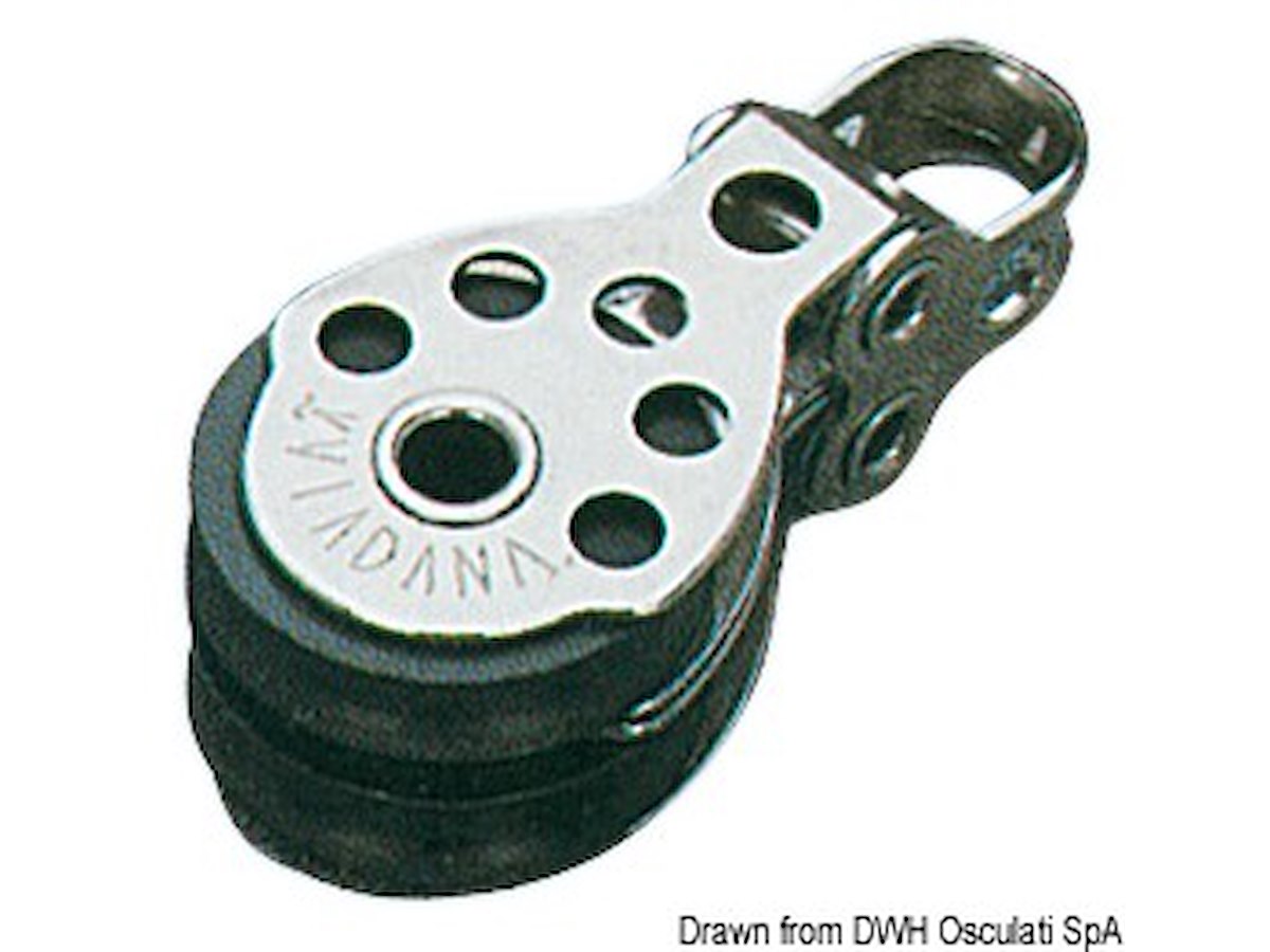 Versione: Doppio Puleggia Ø mm: 25 Per cime fino a mm: 6 Carico di rottura kg: 650