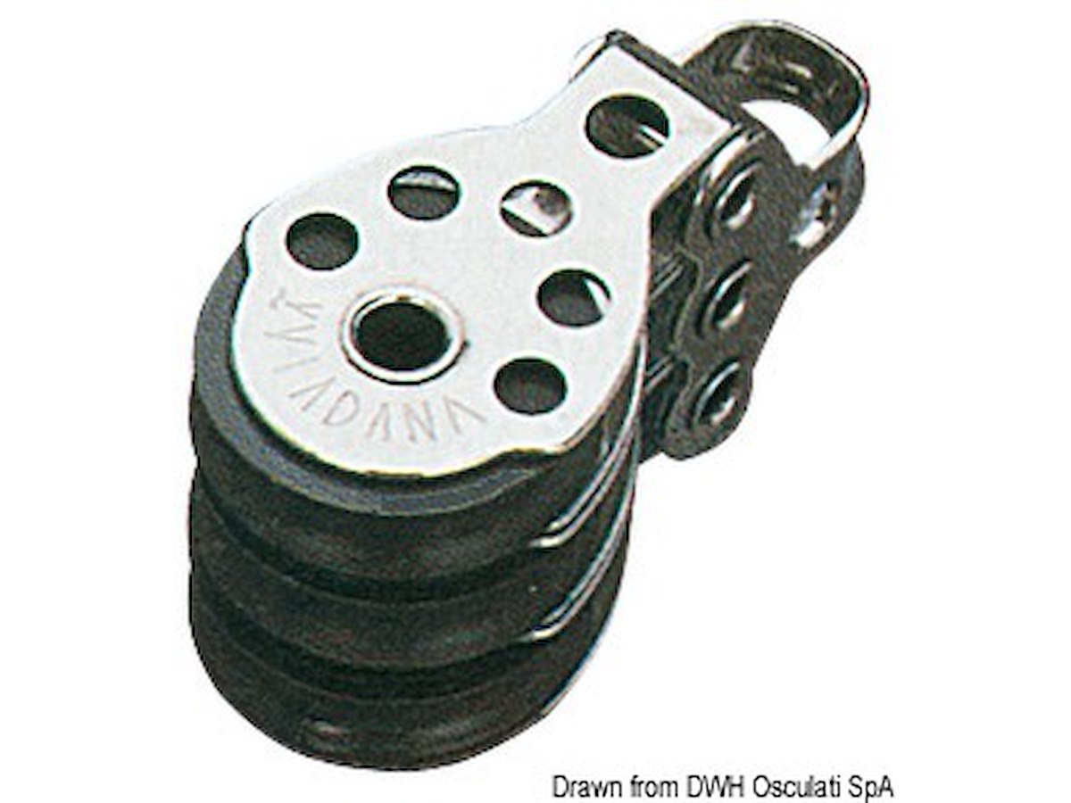 Versione: Triplo Puleggia Ø mm: 25 Per cime fino a mm: 6 Carico di rottura kg: 650