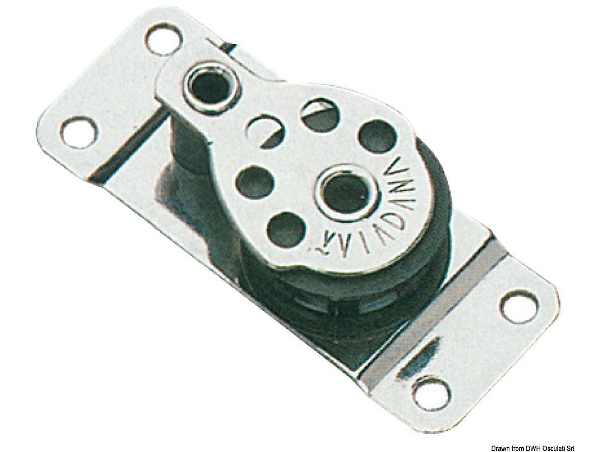 Variante: Standard Versione: Semplice su base raggiata Puleggia Ø mm: 25 Per cime fino a mm: 8