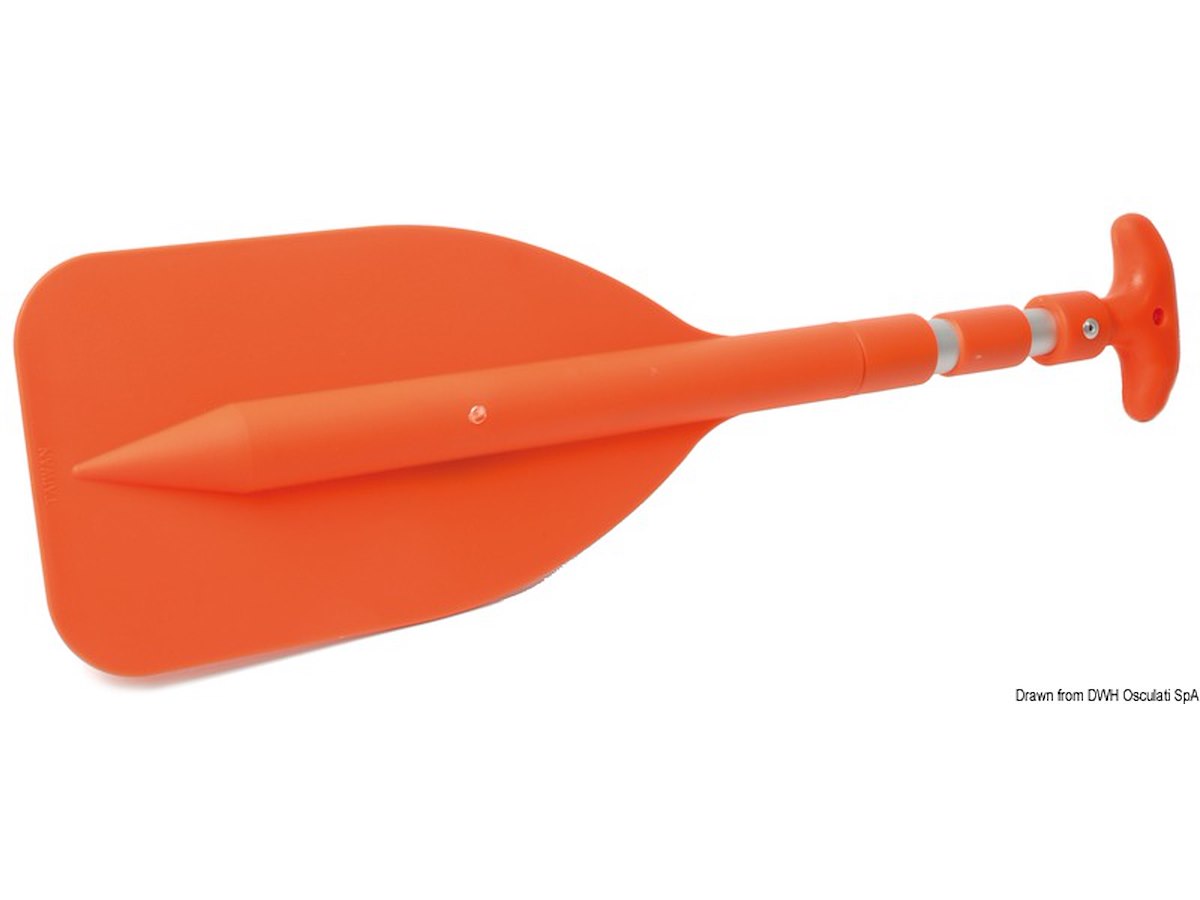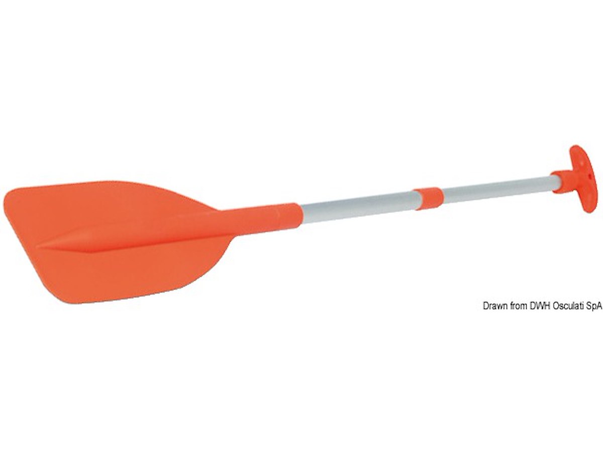 Pala ed impugnatura in plastica arancione ad alta visibilità, tubo in alluminio anodizzato. Particolarmente adatta per zattere di salvataggio e piccoli PRAM di servizio.