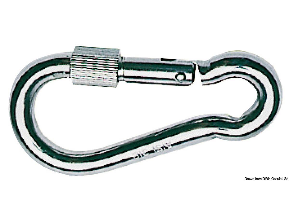 Moschettone in acciaio inox con ghiera di fermo a vite