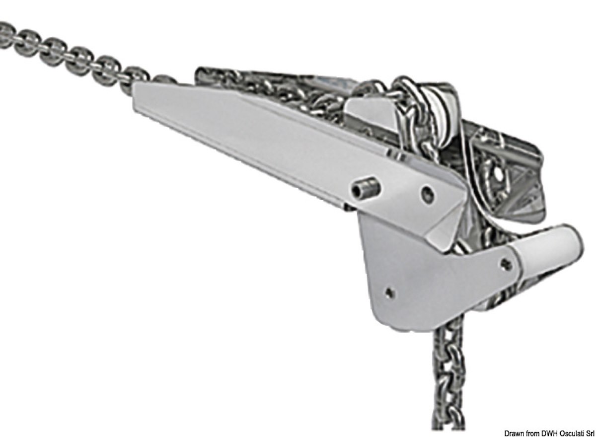 In acciaio inox 304 lucidato. Pulegge in nylon. Universali per DELTA / BRUCE / TREFOIL / CQR / SOC.