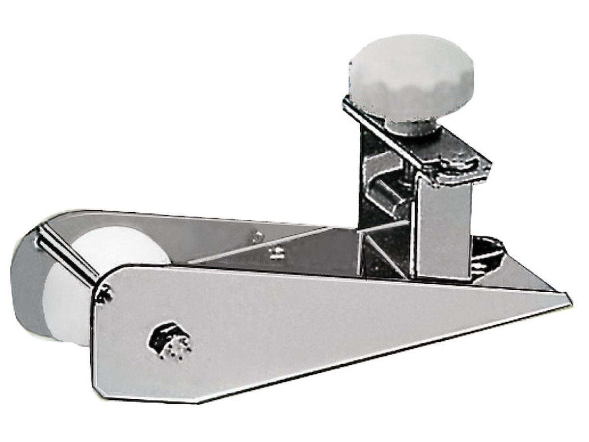 In acciaio inox 304, finitura Chromelux®, completo di puleggia in nylon e spina di sicurezza superiore.