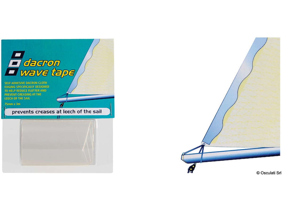 Nastro autoadesivo in dacron R progettato per rinforzare le zone usurate delle vele (esempio la balumina della randa) che sotto vento, essendo snervate, tendono a sbattere riducendo in maniera significativa la resa.