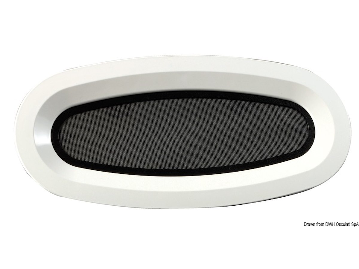 Forma: Ellittica Esterno mm: 418x200 Taglio mm: 395x174 Colore: Bianco Sigla Bomar: 619