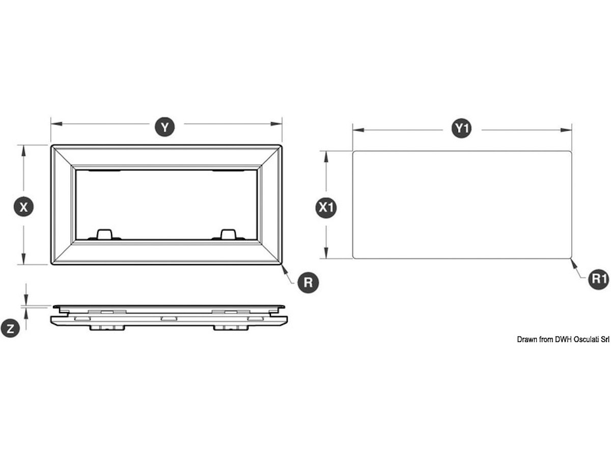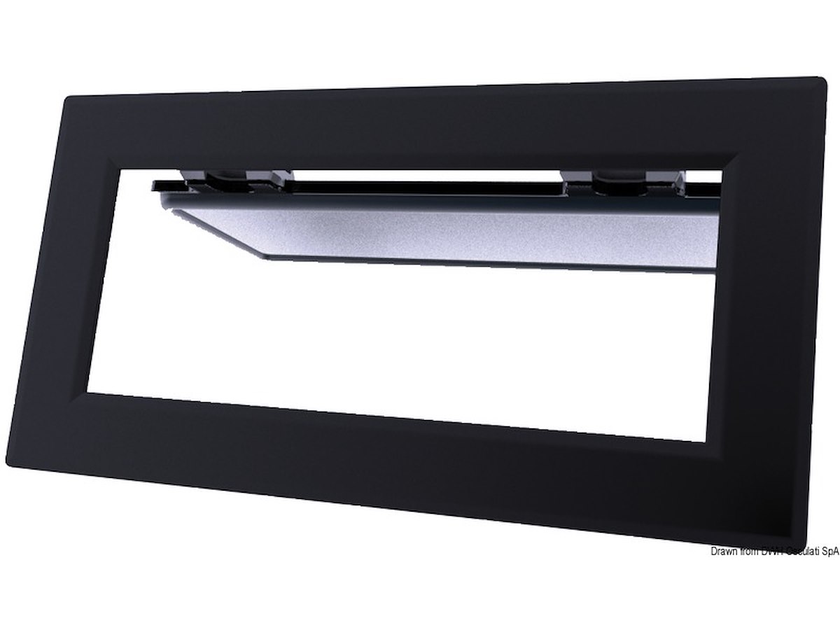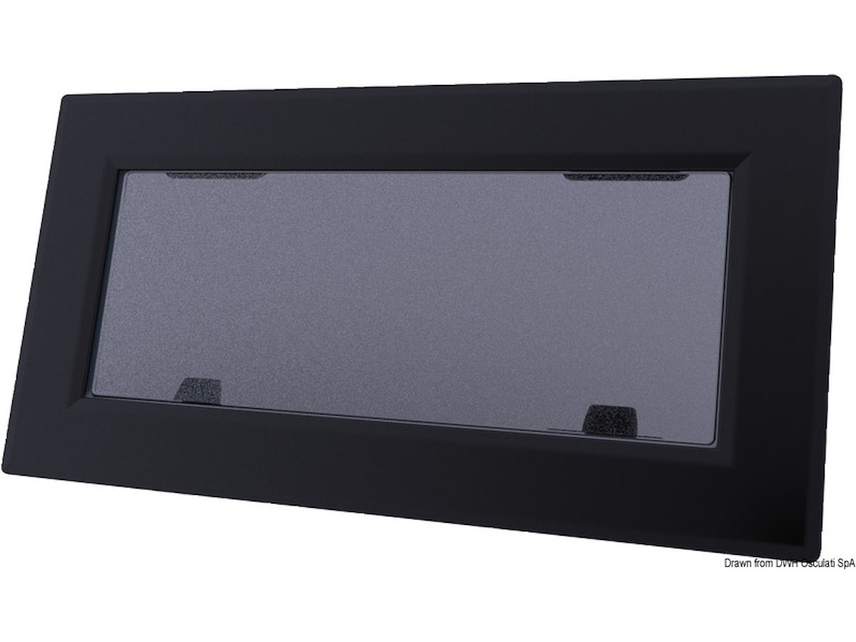 Una gamma di oblò nata per soddisfare le esigenze di design e modernità. Cerniere con frizione integrata e leve di chiusura a scatto ad azione rapida e sicura. Il telaio, in alluminio anodizzato e verniciato a polvere in nero opaco, è adatto all'installazione su vetroresina, plexiglass. L'installazione è semplice e rapida e può essere effettuata da un solo operatore, la cornice esterna filettata si accoppia alla controflangia interna mediante viti passati.