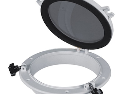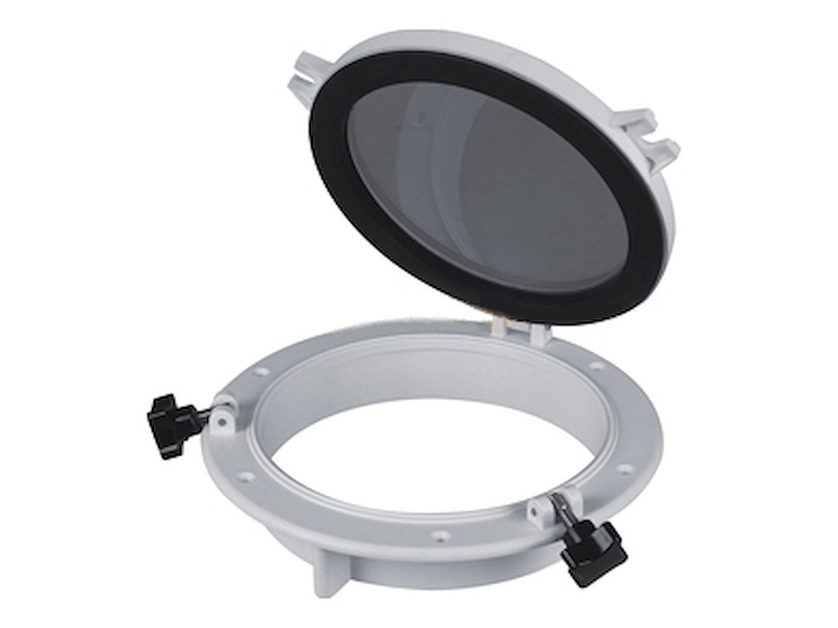 oblò apribile in vetro temperato e ABS anti-invecchiamento e anti raggi ultravioletti, finiture in acciaio inox AISI 316